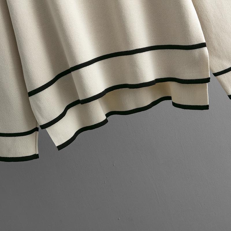 Dieses Strickset für Damen umfasst einen leger geschnittenen Pullover und eine Hose mit weitem Bein, die als harmonische Kombination gedacht sind. Der Pullover besitzt einen runden Ausschnitt und lange Ärmel, wobei kontrastierende Abschlüsse an Saum und Bündchen einen feinen Akzent setzen. Die Hose ist gerade und fließend geschnitten und wird durch einen elastischen Bund ergänzt, der für ein ausgewogenes Tragen sorgt.